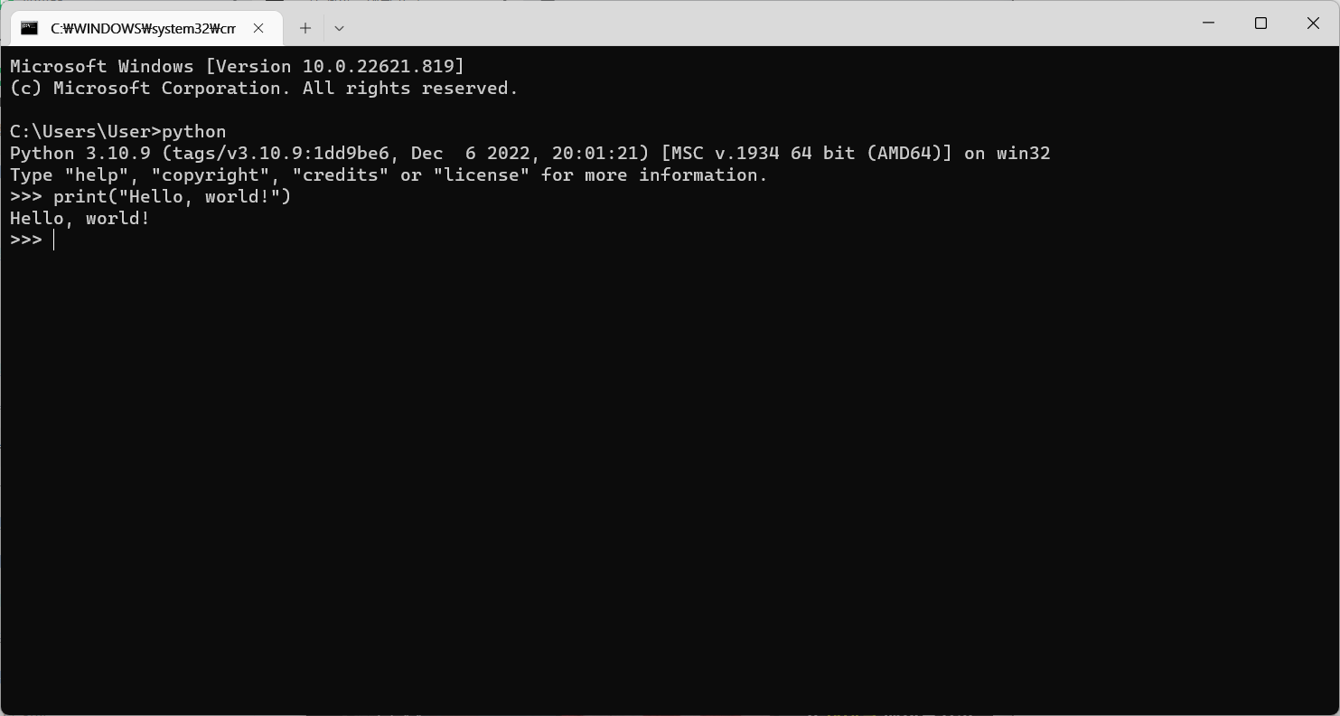 파이썬 C:\Users\User>python C:\Users\User\Documents\PYTHON_RUBY\Number\1.py
