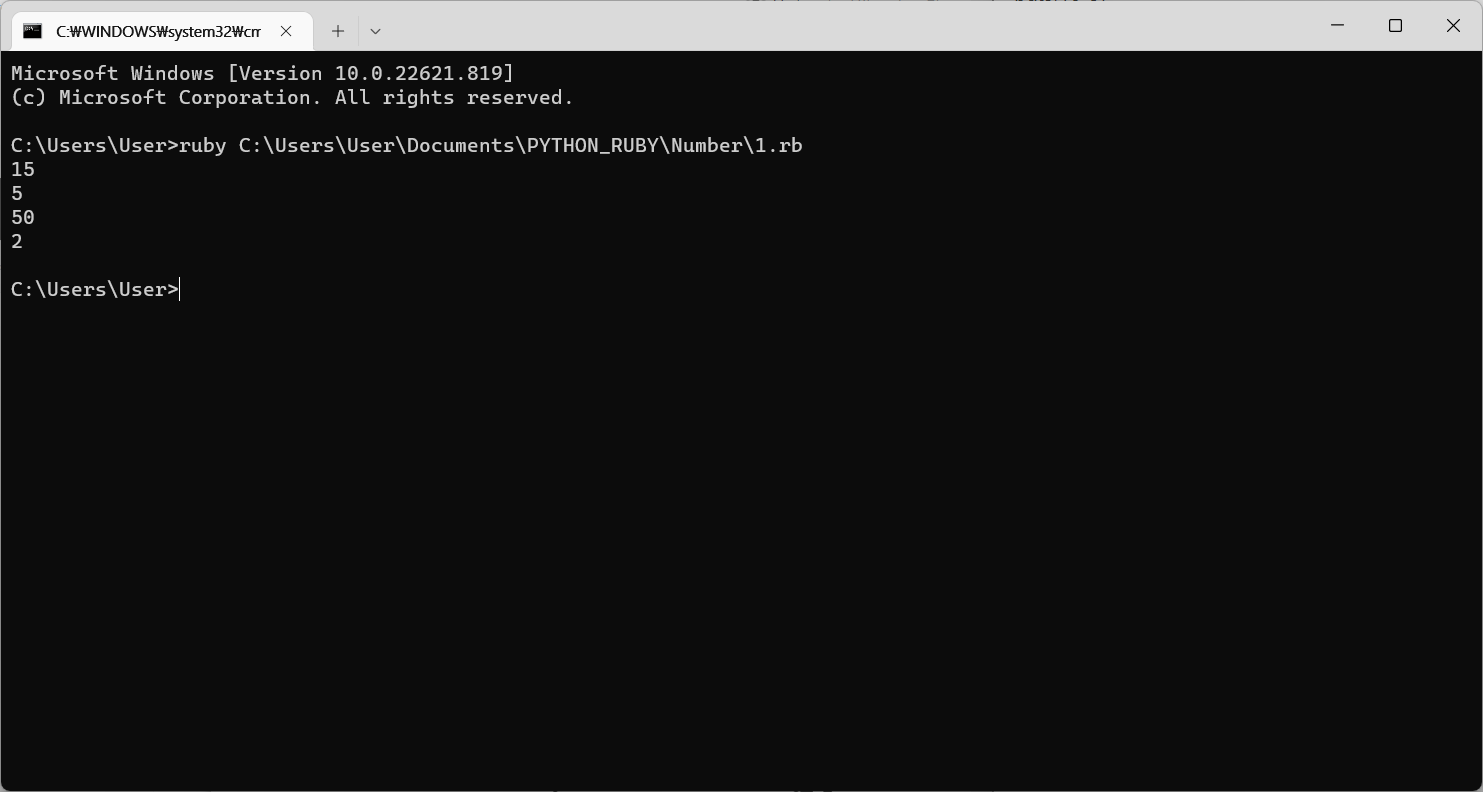 루비 C:\Users\User>ruby C:\Users\User\Documents\PYTHON_RUBY\Number\1.rb