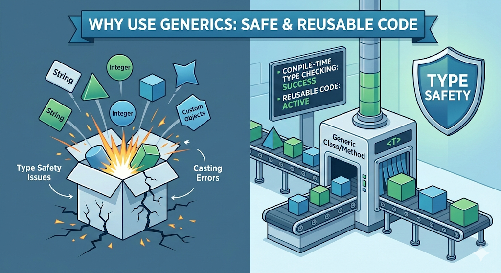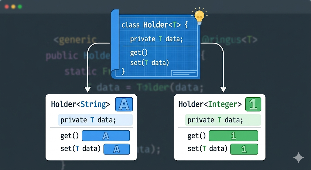 다양한 데이터 타입을 처리할 수 있는 클래스, 인터페이스, 메서드를 작성하는 기법이다.