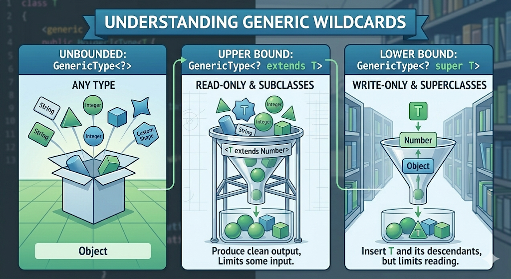 | 하한 경계 와일드 카드 | GenericType<? super T> |