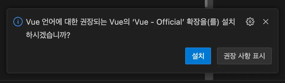 App.vue 파일 열었더니 설치하라고 나오는 팝업