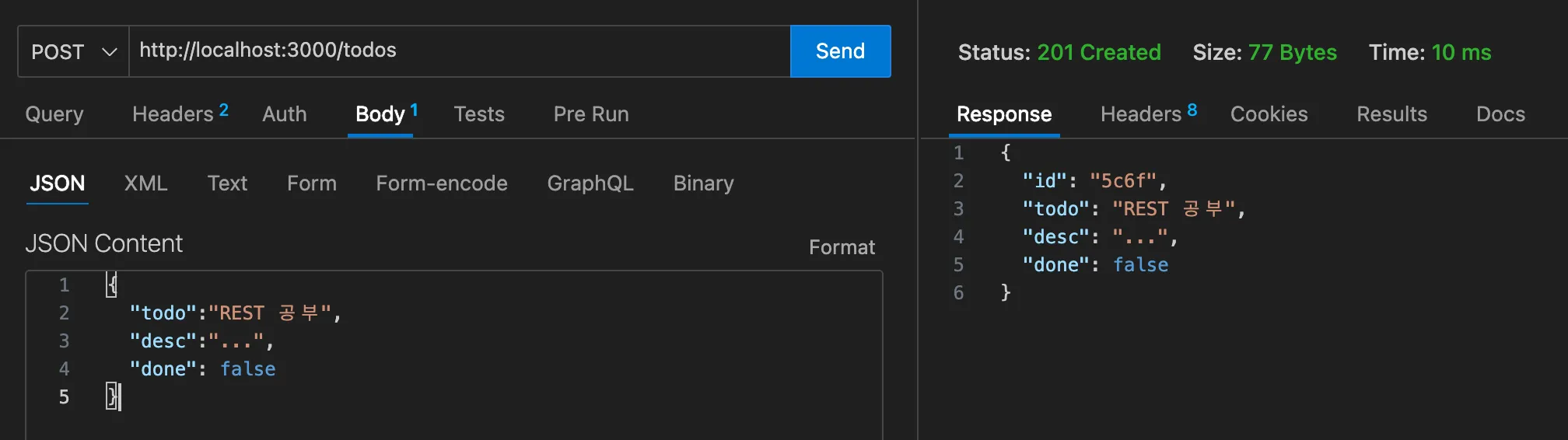 Body를 사용하는 경우 (POST, PUT, PATCH)