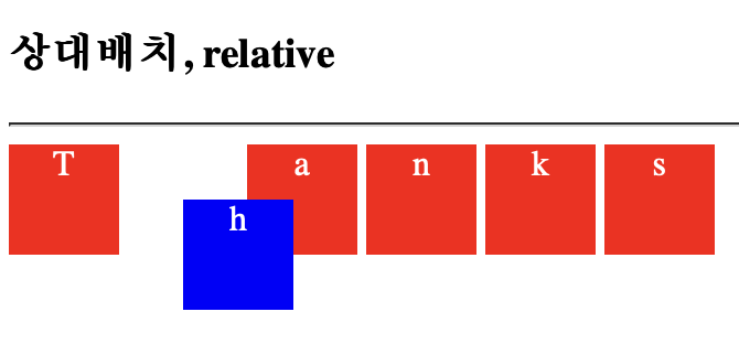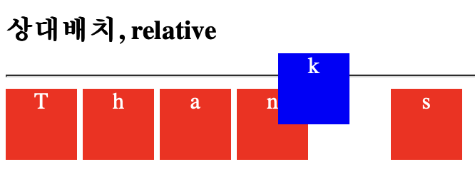 position: relative; -> 자기 자신의 원래 위치(static 위치)를 기준으로 이동함