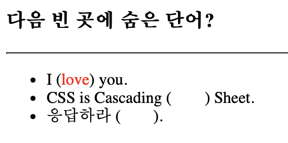 <h3>다음 빈 곳에 숨은 단어?</h3>