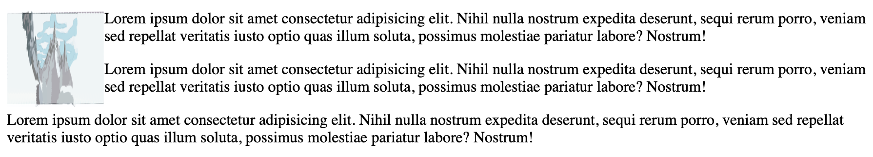 </p> -> clear: both;가 적용되어 container 바깥의 문장이 이미지 영향을 받지 않고 정상적으로 배치됨
