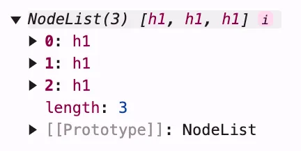 // headers -> { '0' : h1 '1' : h1 '2': h1 'length' : 3 }