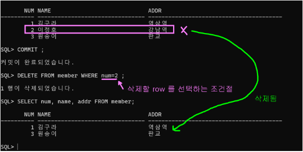 현재 명령프롬프트에서 임시로 DATA가 반영되어 있는데 실제 DB에 저장하고 싶은 경우 COMMIT을 통해 저장이 된다.