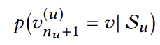 ์์ฐจ์ ์ถ์ฒ์์ interaction history S๊ฐ๊ฐ ์ฃผ์ด์ก์ ๋ ์ฌ์ฉ์ u๊ฐ ์์ดํ v๋ฅผ time step n+1์์ ๋ณผ ํ๋ฅ ์.