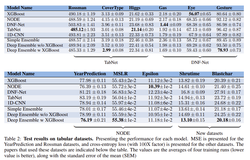 ๐ก ๋ณธ ๋ ผ๋ฌธ์์๋ ์ ๋ง๋ก ๋ฅ๋ฌ๋ ๋ชจ๋ธ๋ค์ด GBDT๋ฅผ ๋ฅ๊ฐํ๋์ง ํ๊ตฌํจ. ์ต๊ทผ์ ์ ์๋ ๋ฅ๋ฌ๋ ๋ชจ๋ธ๊ณผ XGBoost๋ฅผ ๋์ผํ ํ๋ ํ๋กํ ์ฝ๊ณผ ๋์ผํ ๋ฐ์ดํฐ์ ๋ฐํ์์ ํ๊ฐํ์ฌ, ๋ฅ๋ฌ๋์ด ๋ ผ๋ฌธ์์ ์ ์ํ ๋ฐ์ดํฐ์ ์ด์ธ์ ๋ฐ์ดํฐ์์๋ ์ฑ๋ฅ์ด ๋จ์ด์ง์ ๋ณด์ฌ์ค.