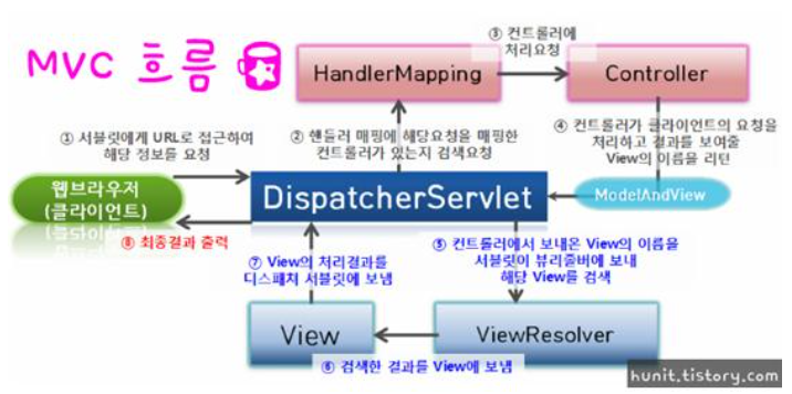 - 모든 요청은 DispatcherServlet으로 들어옴