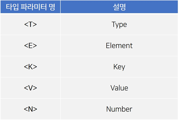 // T는 제네릭 타입 변수