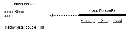 + display(n1 : int, n2 : int) : void / + display(int, int) : void