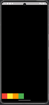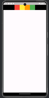 아래 그림과 같이 Row 내부에 있는 container 요소 4개 크기의 합이 max width 보다 작다. 하지만 Row 영역(Colors.black)은 전체 가로 크기를 차지하는 모습을 볼 수 있다.