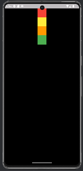 MainAxisAlignment의 default 값은 start지만, CrossAxisAlignment의 default 값은 center이다. 예제 코드에서 mainAxisAlignment와 crossAxisAlignment의 값을 지정하지 않으면 아래와 같은 결과가 나타난다.