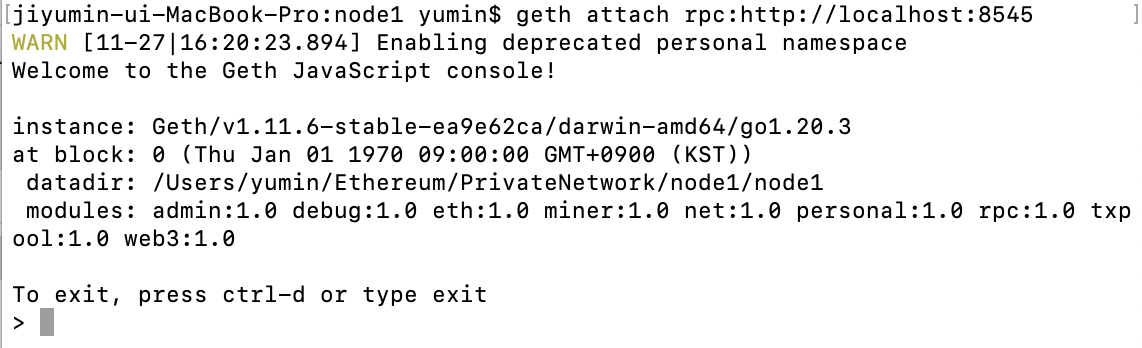 $ cd Ethereum/PrivateNetwork/node1