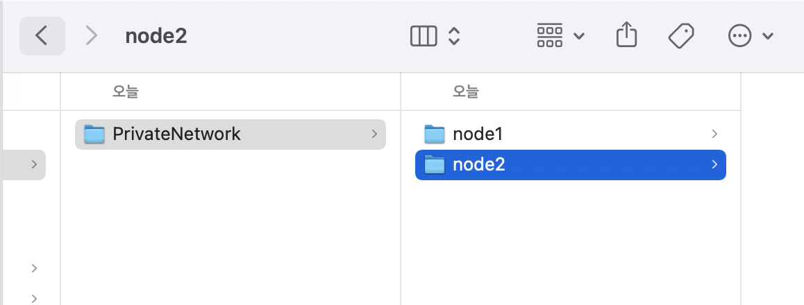설치한 파일 압축풀고 Ethereum/PrivateNetwork/node1으로 이동시킴