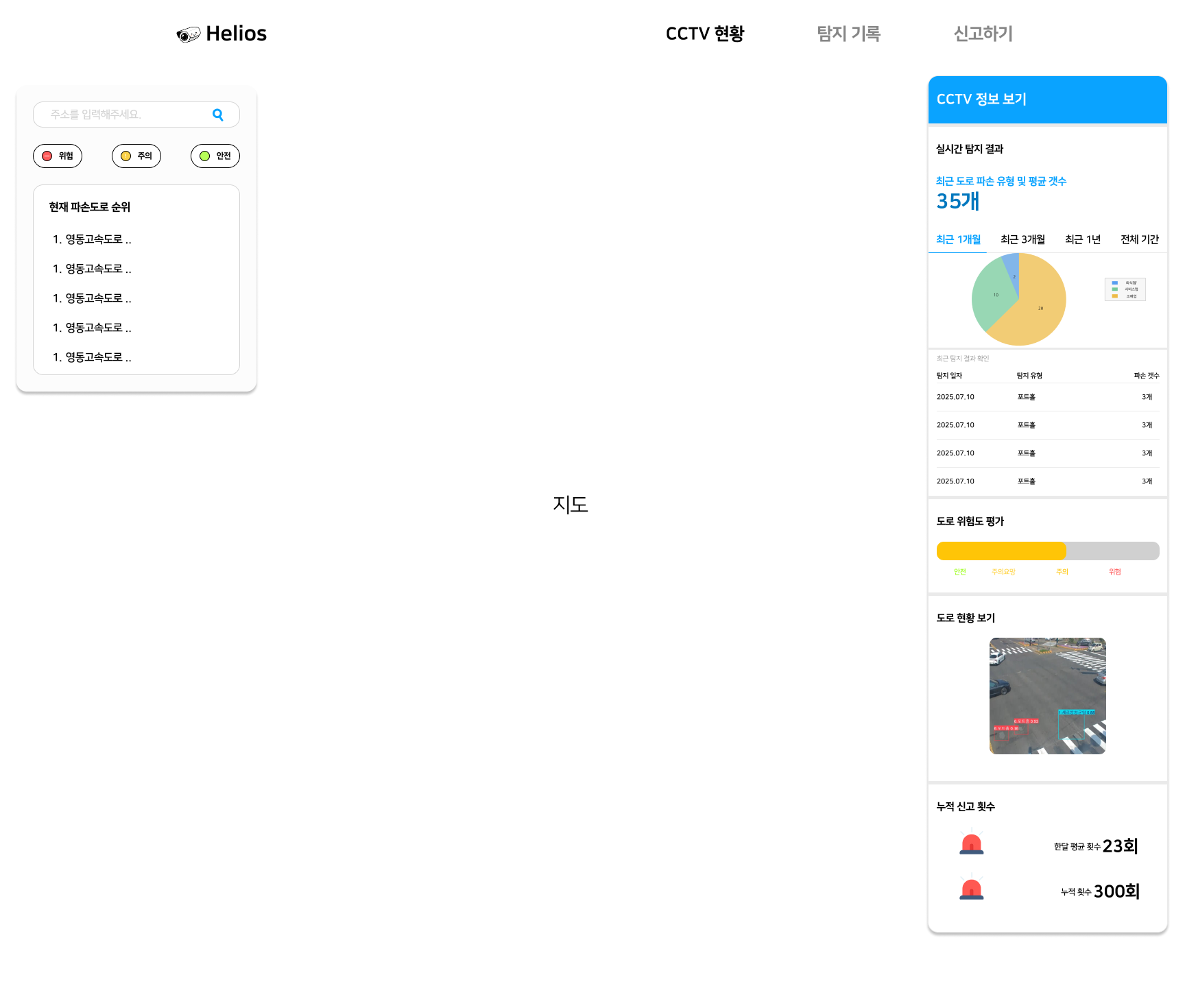 지도위의 파손 현황을 볼 수 있는 페이지이다. 아직 마커를 디자인 하진 않았으며 마커를 눌렀을 때 현재 좌표의 도로 상태를 확인할 수 있다.