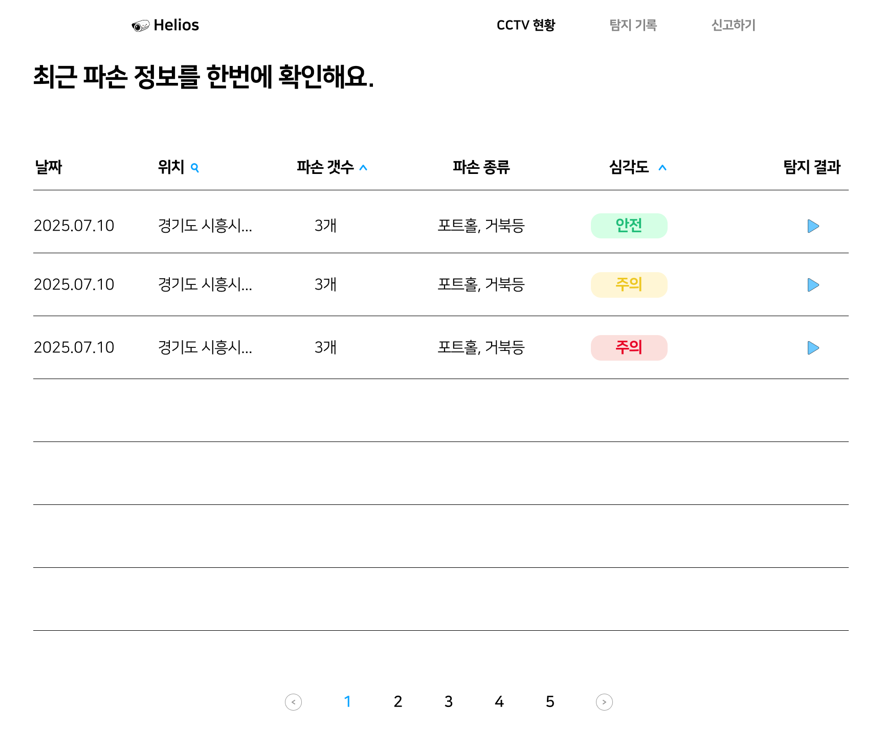 가장 걱정이 큰 부분이다. 모든 파손 정보를 볼 수 있는 페이지이며 해당 페이지의 경우 많은 데이터를 보여줘야 하므로 가독성이 좋아야 하는데 아직 고민이 많은 페이지이다.