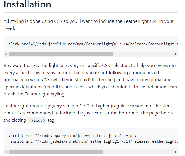 <link rel="stylesheet" href="script/fratherlight/featherlight.css">