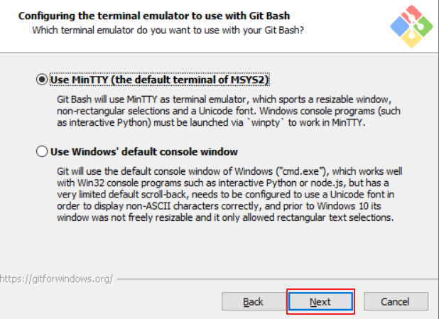 -Use MinTTY (the default terminal of MSYS2) : Git Bash 기본 터미널 에뮬레이터(MinTTY)를 사용합니다.