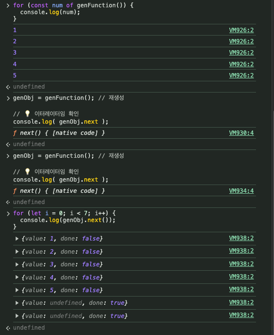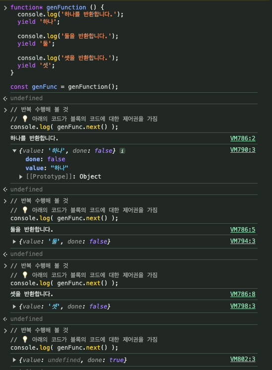 done - 순회 종료 여부 ( 마지막 값 반환 다음 차례부터 )