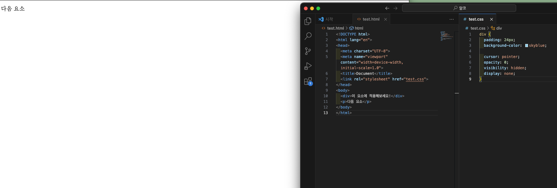 visibility속성을 이용하면 해당 요소를 보이게 하거나 숨길 수 있다.