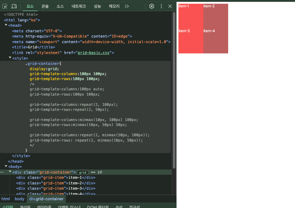 그리드 컨테이너의 기본 요소는 행과 열이다.