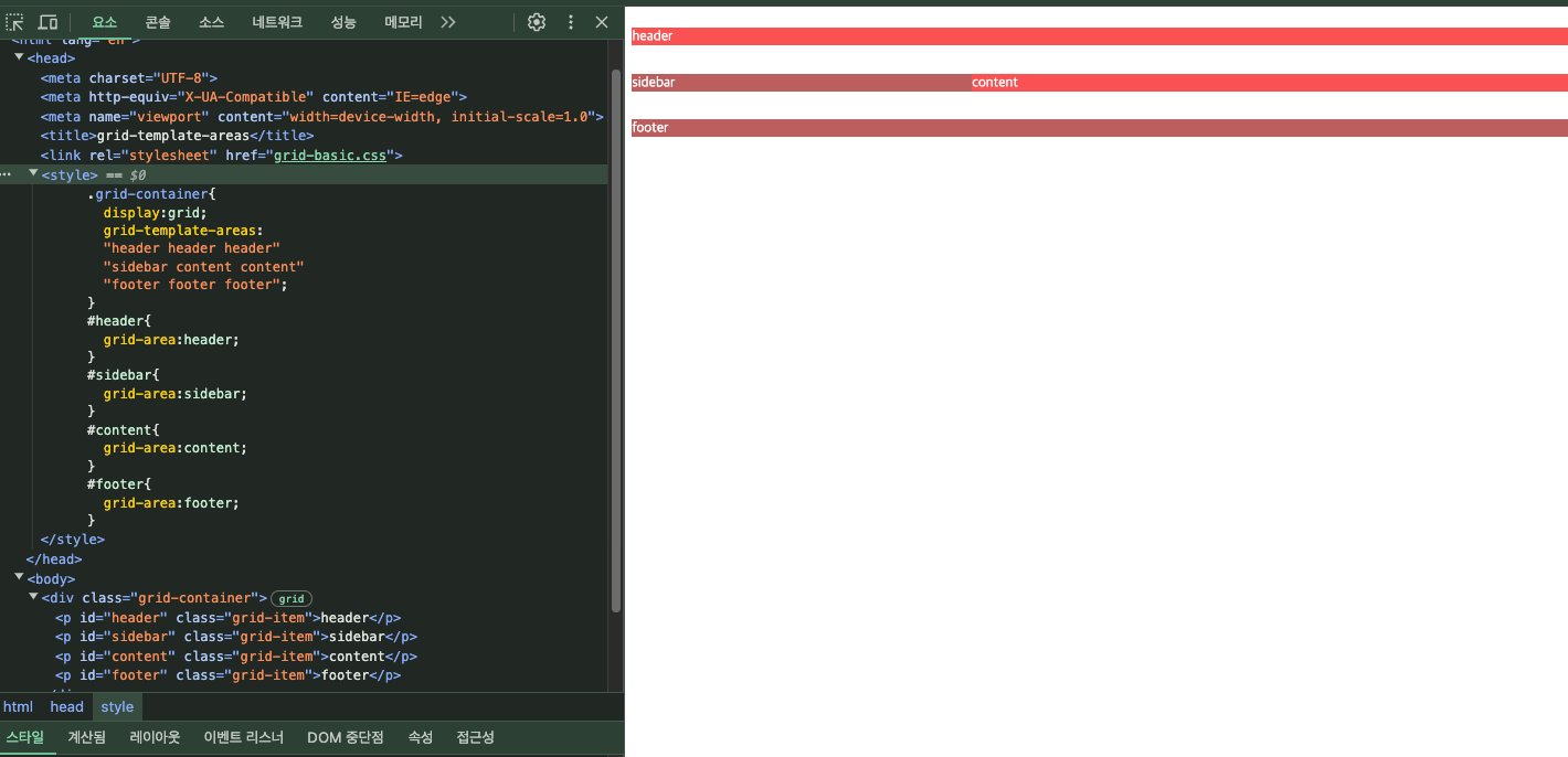 grid-template-areas 속성은 그리드 레이아웃의 행과 열을 이름으로 지정