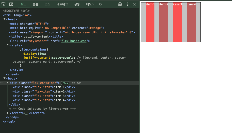 space-evenly 속성은 플렉스 아이템 사이와 양끝의 간격이 균일하도록 정렬