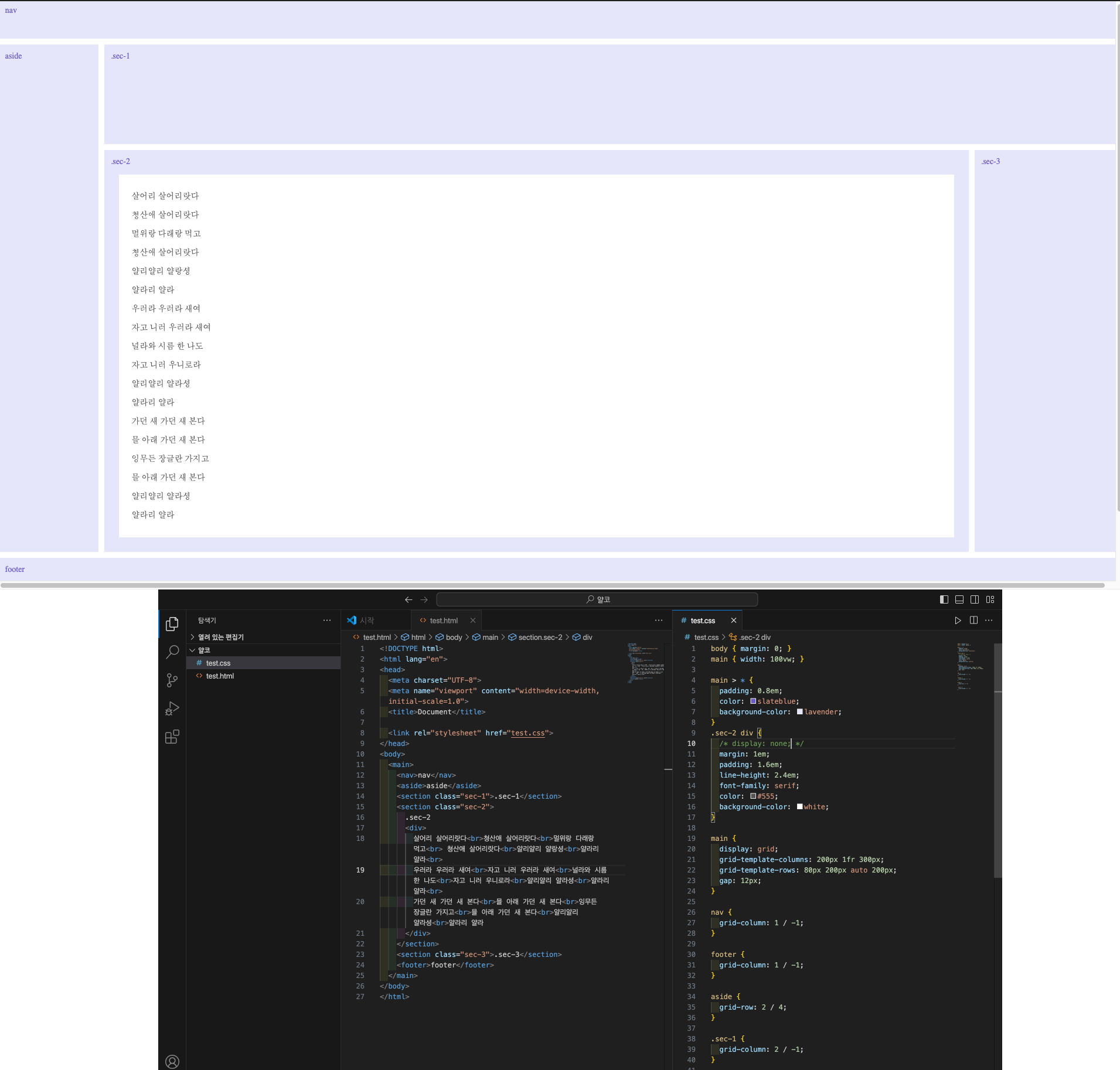 콘텐츠와 영역의 배치 등을 다루는 layout 기술