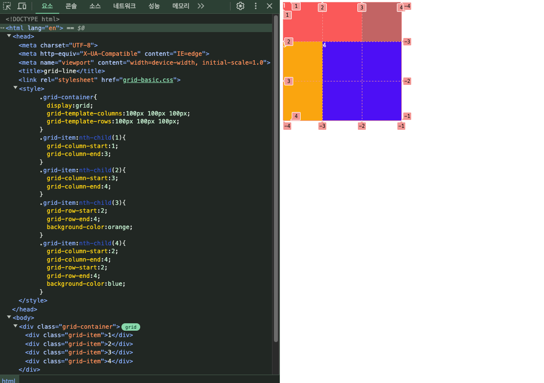 그리드 행과 열을 그리는 선을 그리드 라인이라고 한다. 그리드 라인에는 각각 고유한 번호가 있는데, 이를 그리드 넘버라고 한다.