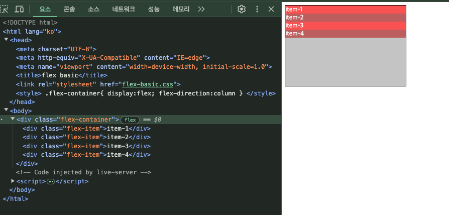 flex-basis는 메인 축상의 길이로, 컨테이너의 flex-direction 값에 따라 너비 또는 높이값으로 작용. 기본값은 auto.