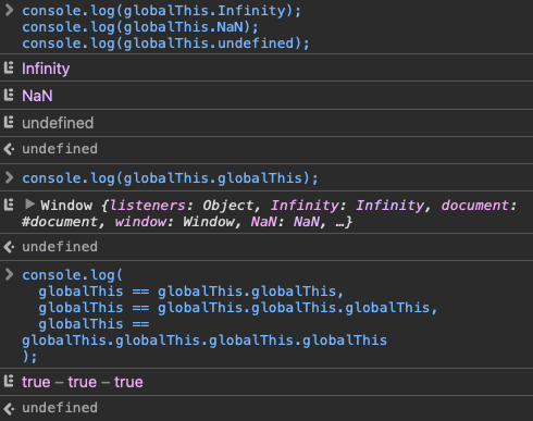 Infinity, NaN, undefined 등의 원시값들은 이 프로퍼티들을 가리킴