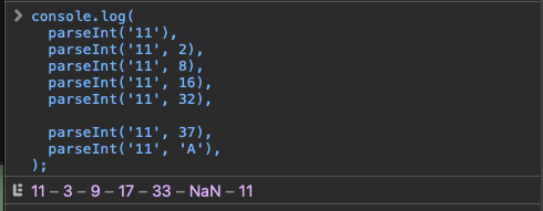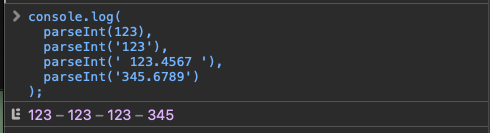 parseInt - 인자로 받은 값을 정수(타입은 실수)로 변환