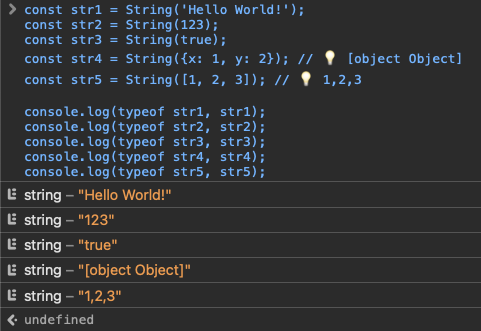 new 없이 사용하면 생성자로서가 아닌 String 함수는 주어진 인자를 문자열로 변환하여 반환