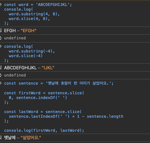 인자를 하나만 넣으면 해당 인덱스부터 끝까지