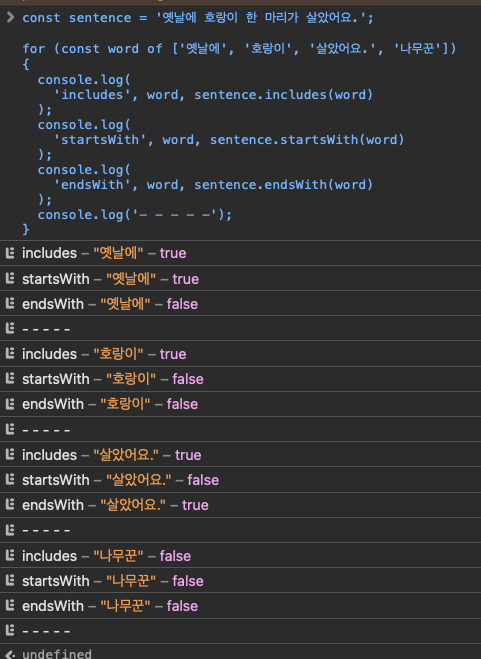 인자로 주어진 문자열 포함( 아무곳에 / 맨 앞에 / 맨 끝에 ) 여부 불리언으로 반환
