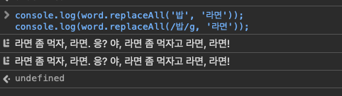 replaceAll은 문자열도 자동으로 /.../g처럼 인식