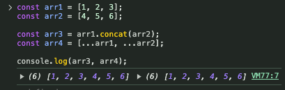 concat - 배열에 다른 배열이나 값을 이어붙인 결과를 반환