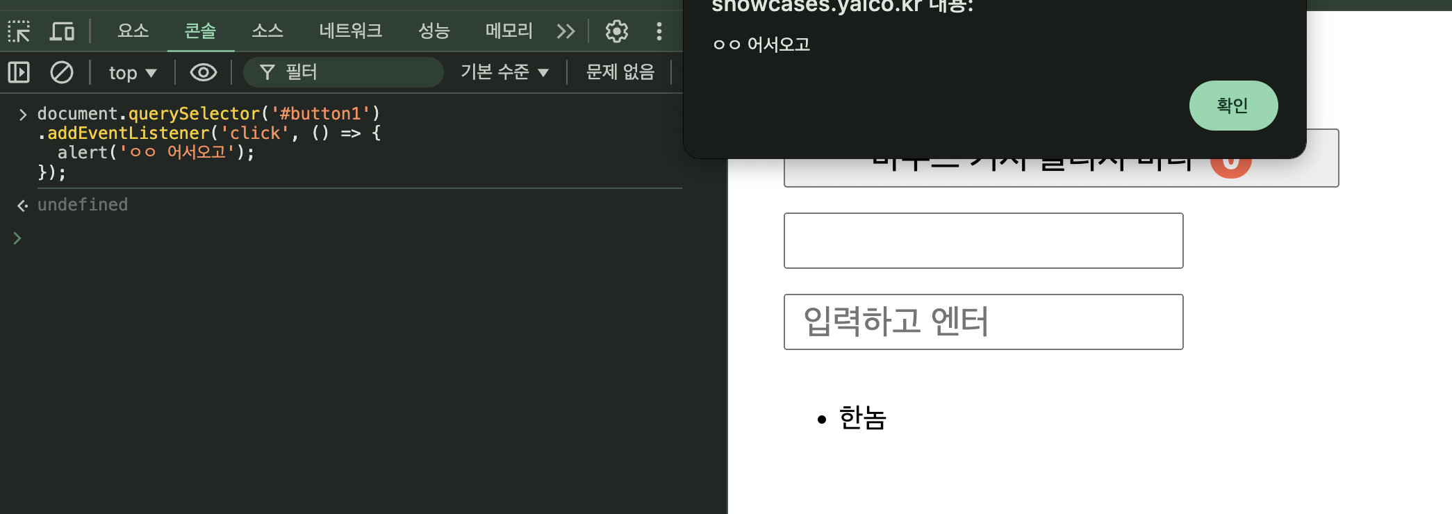 요소가 클릭되었을 때 alert- 주어진 메시지로 알림 팝업 띄움