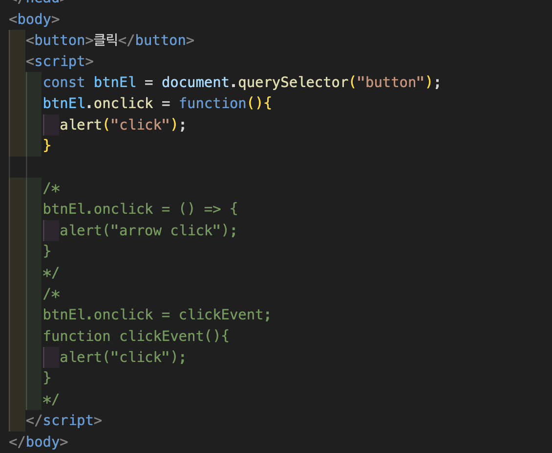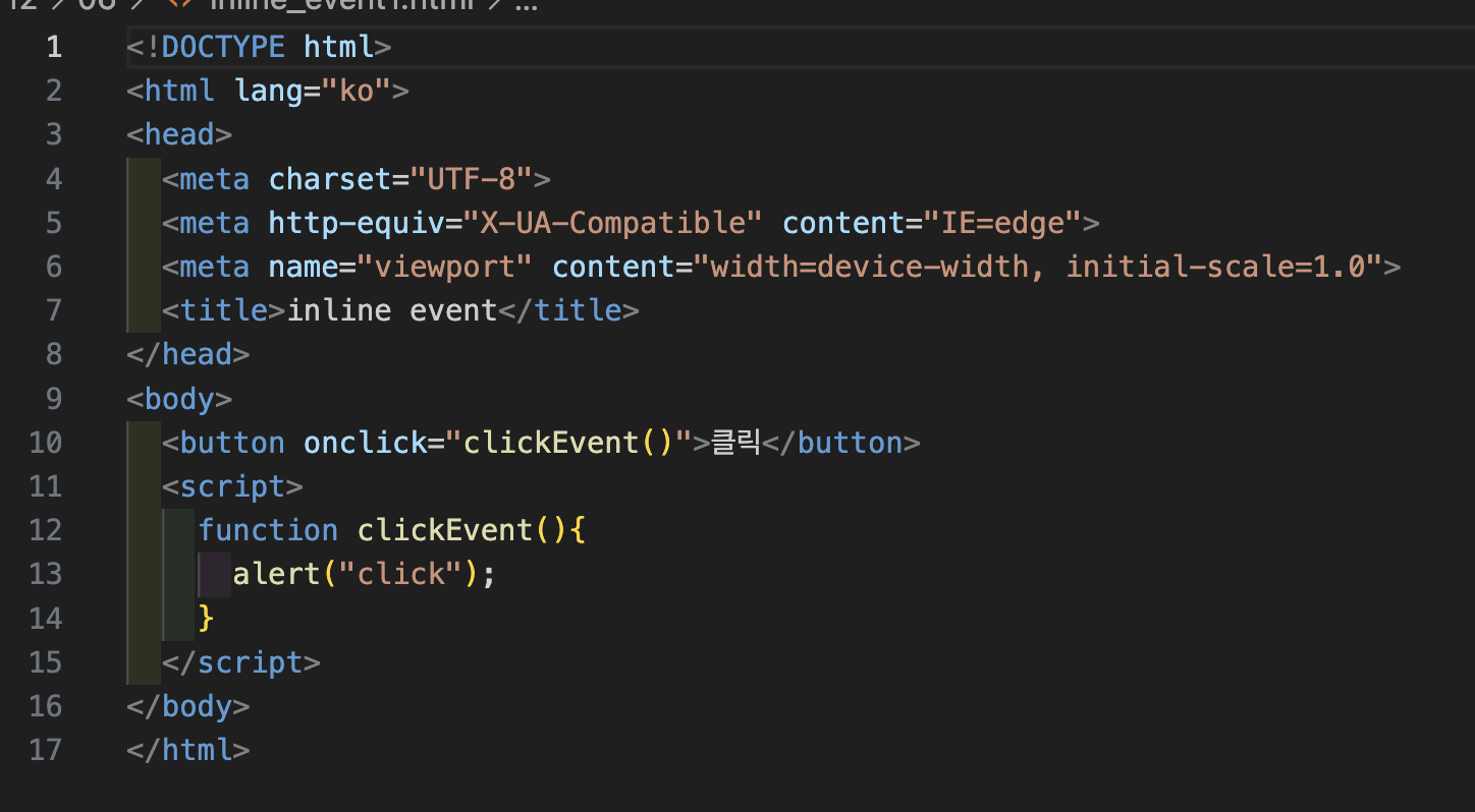 요소 노드에 직접 속성으로 이벤트를 등록하는 방법