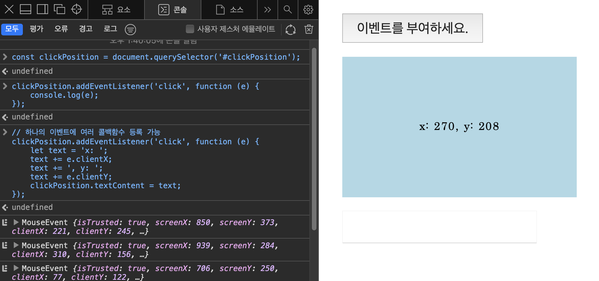 // 하나의 이벤트에 여러 콜백함수 등록 가능