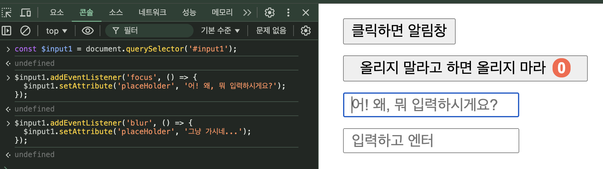 요소가 포커스(입력을 위해 선택)되었을 때 / 해제되었을 때