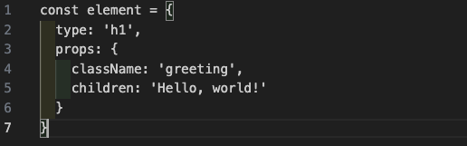 React.createElement()의 결과로 아래와 같은 객체가 생성된다.