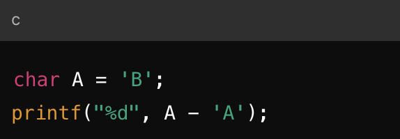 'A'는 문자 리터럴로, 아스키 코드 값은 65