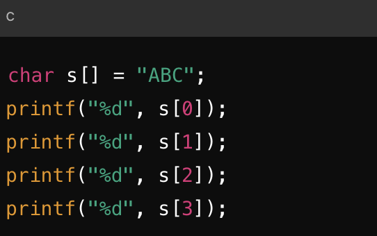 s[3] = '\0' (널 문자, 아스키 코드 0)
