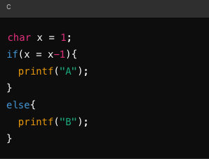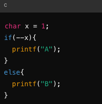 x = x - 1로 인해 x는 0이 되고, if 조건문에서 0은 거짓으로 평가되므로, else 블록이 실행되어 B가 출력