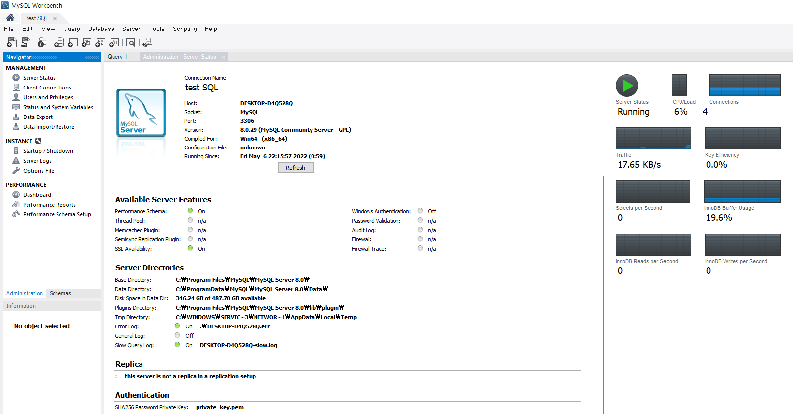 MySQL 8.0.20 이후의 버전에서 MySQLWorkbench를 사용하려고 할 때, Server Status를 누르면 다음과 같은 에러가 발생할 수 있다.