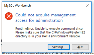 이 에러는 환경변수 설정이 제대로 되지 않았거나 chcp.com파일에 문제가 있는 경우에도 뜨기 때문에 먼저 다음과 같은 사항들을 살펴보자.