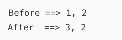 System.out.println("Before ==> " + o1.value + "," + o2.value); // 1, 2